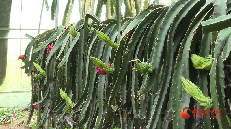 “咱們剛才看到的是從廣西引進的火龍果,它是紅心品種,火龍果的嘗試很成功,現(xiàn)在目前的產(chǎn)量也很不錯,今年正是豐產(chǎn)年。”合作社負(fù)責(zé)人李隴兵說道。