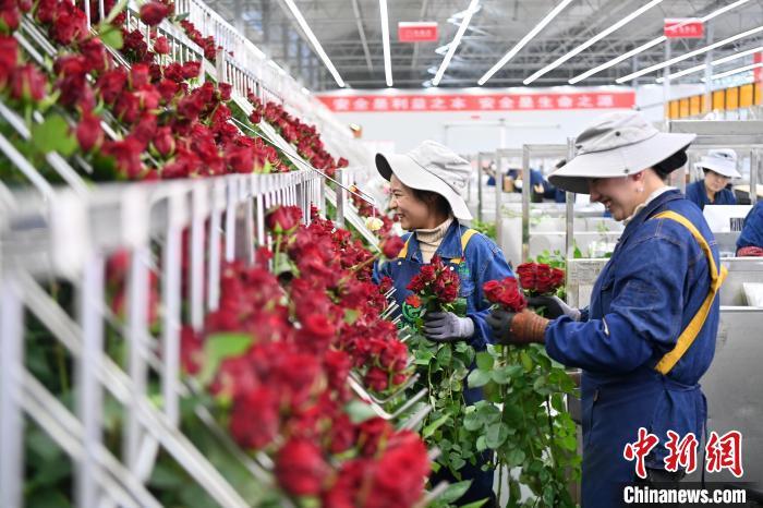 近年來,當(dāng)?shù)靥岢?ldquo;打造魅力花都、建設(shè)公園城市”,聚焦“浪漫經(jīng)濟(jì)”,大力發(fā)展鮮切花產(chǎn)業(yè)。交通便利、人力資源富集是吸引這座“超級玫瑰工廠”國際鮮花港落戶臨夏的主因。