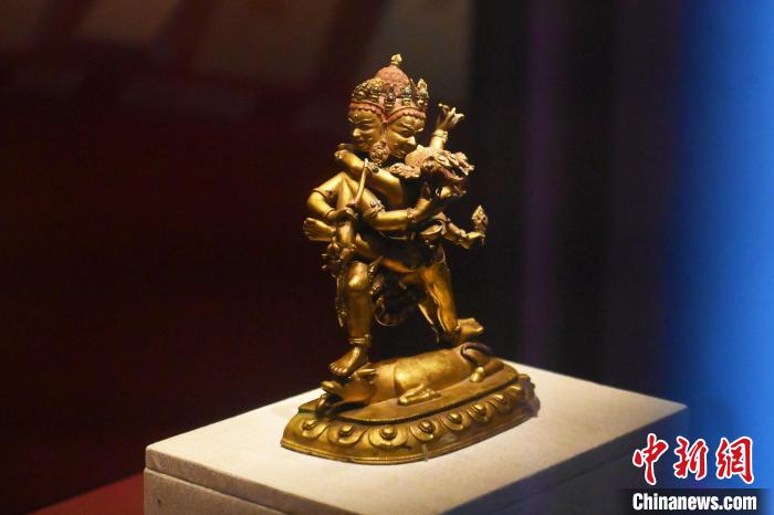 11月28日,甘肅省敦煌市,敦煌研究院敦煌石窟文物保護(hù)研究陳列中心《披沙揀金——敦煌研究院館藏文物擷英展》中的勝樂金剛像。該展由敦煌研究院主辦,2024年下半年煥新布展,展出了不同類型館藏文物,通過這些文物蘊(yùn)含的豐富歷史信息,展現(xiàn)了敦煌文化的多元與包容,勾勒不同文明偕行共進(jìn)的歷史脈絡(luò)。中新社記者 李亞龍 攝