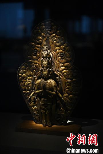 11月28日,甘肅省敦煌市,敦煌研究院敦煌石窟文物保護(hù)研究陳列中心《披沙揀金——敦煌研究院館藏文物擷英展》中的十一面觀音像。該展由敦煌研究院主辦,2024年下半年煥新布展,展出了不同類型館藏文物,通過這些文物蘊(yùn)含的豐富歷史信息,展現(xiàn)了敦煌文化的多元與包容,勾勒不同文明偕行共進(jìn)的歷史脈絡(luò)。中新社記者 李亞龍 攝