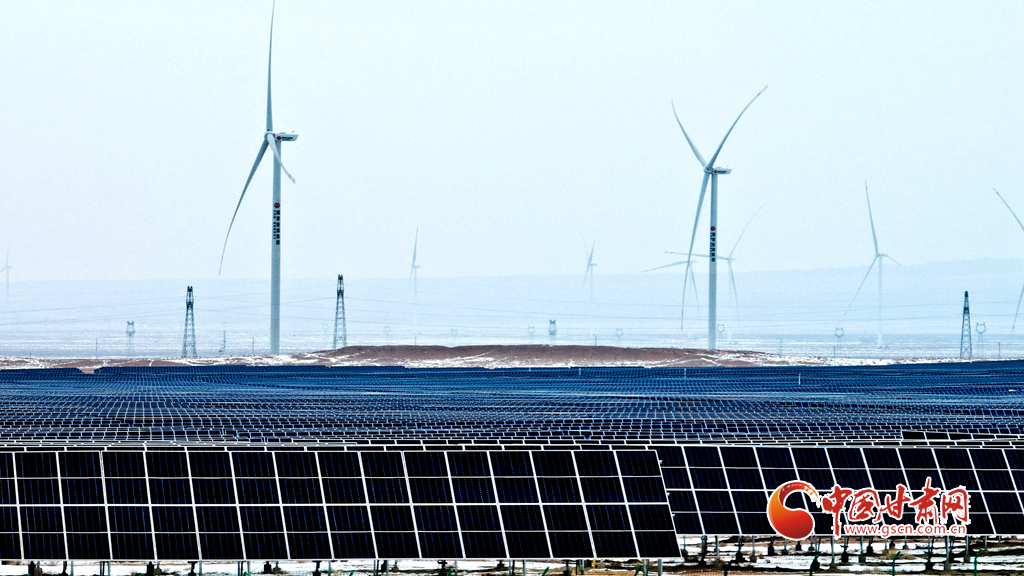 12月18日, 一場大雪過后,大漠深處的張掖市臨澤縣北部灘新能源產(chǎn)業(yè)園內(nèi),81.1萬千瓦光伏治沙光伏集陣和85萬千瓦風力發(fā)電機組群,在防沙治沙的同時將光熱和風力轉(zhuǎn)換為電能輸入國家電網(wǎng),推進了“西電東送”輸電工程建設(shè)。