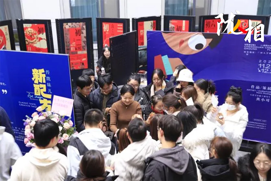 整體被搭建成“S”形的展區(qū),借鑒了博物館的陳展布局,讓參觀者不必走回頭路;展區(qū)第二部分陳列著各種文創(chuàng)玩偶的展臺(tái)赫然入目,讓人驚喜連連;展區(qū)外圍的留言墻,不僅有備好的A4紙,還貼心地粘上了馬克筆,方便觀眾留言……來參觀的人,即便對(duì)藝術(shù)不敏感也能被設(shè)計(jì)者的細(xì)心和創(chuàng)意輕松打動(dòng)。