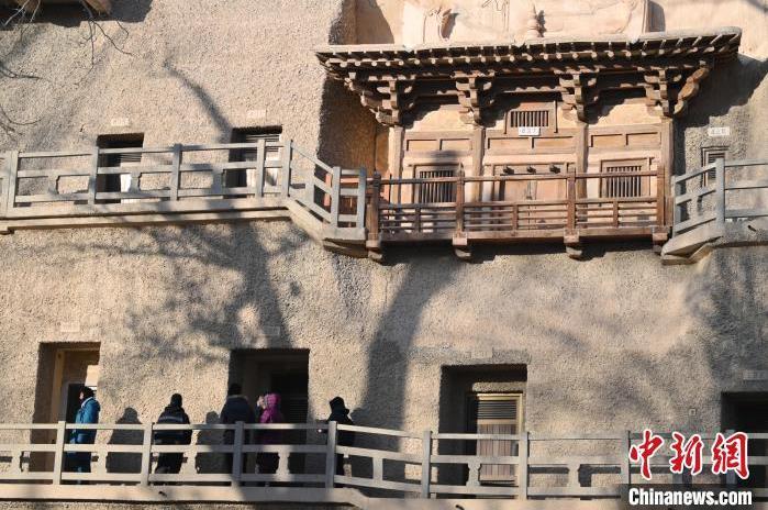 1月13日,甘肅敦煌莫高窟景區(qū)內(nèi),游人半價(jià)進(jìn)行參觀。中新社記者 李亞龍 攝