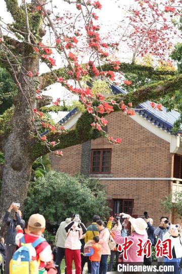 眼下,一株被譽為“中國最美木棉”的超350歲木棉樹以及周邊幾株木棉樹進入盛花期,璀璨的紅棉在中山紀念堂藍瓦朱檐的映襯下,共同構(gòu)成了一道美麗的風(fēng)景線,吸引眾多市民和游客駐足“打卡”。不少攝影愛好者還架起專業(yè)設(shè)備捕捉盛景,定格與木棉花的春日邂逅。