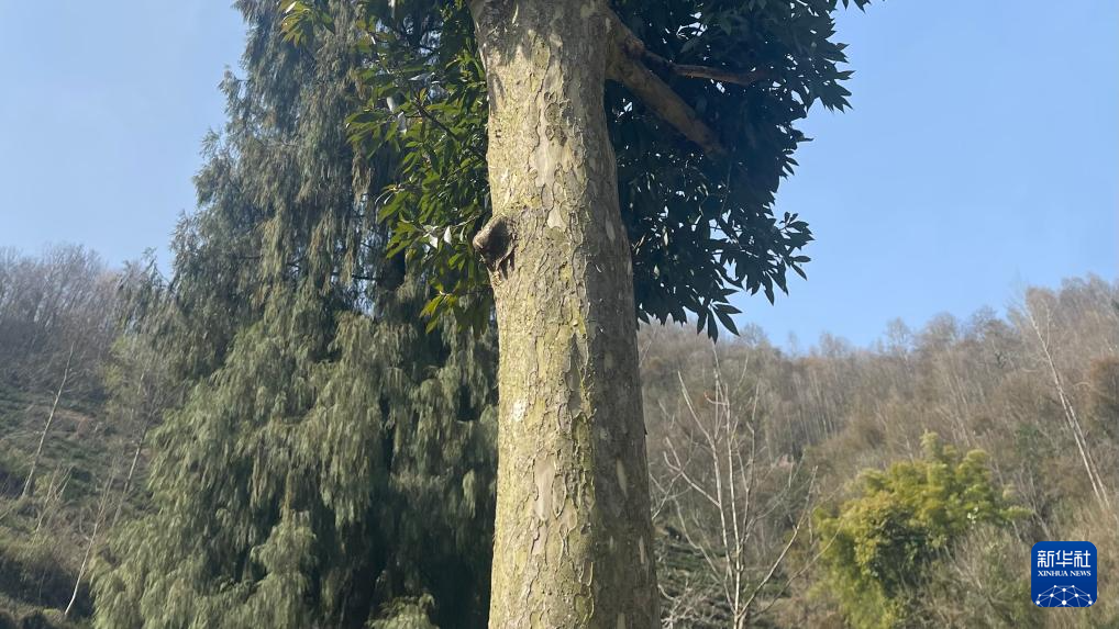 文縣中廟鎮(zhèn)茶園村的老鷹茶樹,經(jīng)測量樹徑周長1.2米。新華社記者李杰 攝