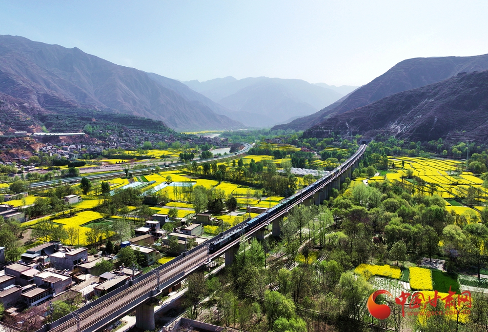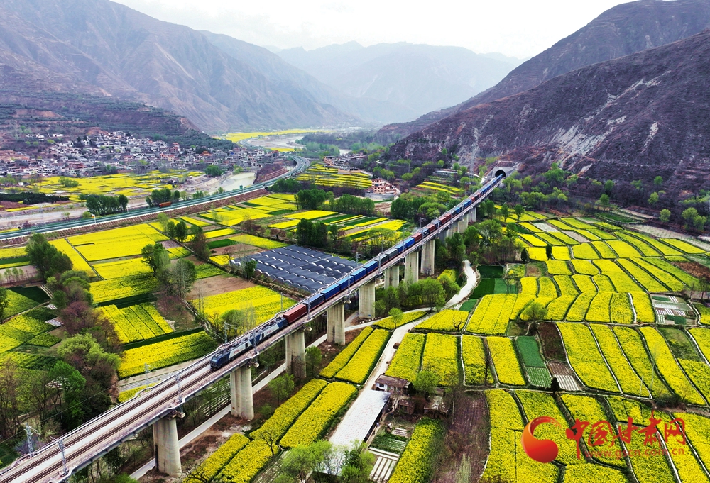 4月10日,列車(chē)在蘭渝鐵路宕昌縣沙灣鎮(zhèn)段附近行駛,穿行于花海之間。現(xiàn)代交通動(dòng)脈與原始鄉(xiāng)野在此默契共生,火車(chē)轟隆駛過(guò),為春日畫(huà)卷增添了別樣的景致。