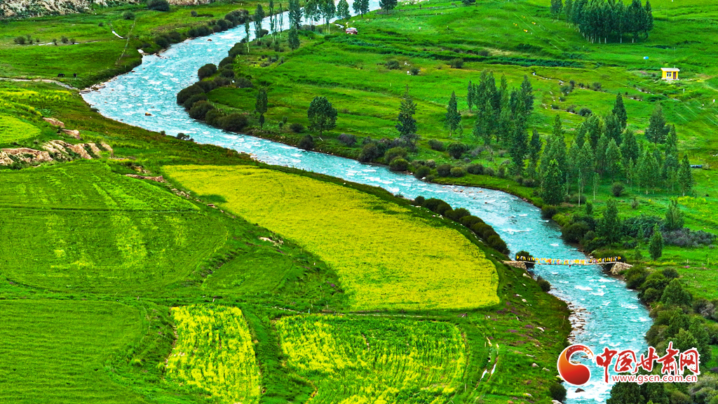 7月14日,一場小雨過后,張掖市肅南裕固族自治縣皇城鎮(zhèn)泱翔片區(qū),萬畝麥田泛黃、油菜花盛開如金。微風吹拂,麥浪翻涌花香浮動。遠眺祁連山巍峨聳立,近觀民居錯落有致,構成一幅和諧的畫卷。