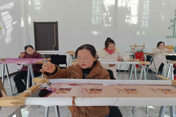 “以前特別自卑,不敢出門。”袁紅艷是一名殘疾人,曾經的她因身體缺陷長期封閉自我。轉變始于2005年一次鄉(xiāng)鎮(zhèn)刺繡培訓,在這場培訓活動中,她結識了左煥茸老師,從此踏入刺繡行業(yè)。