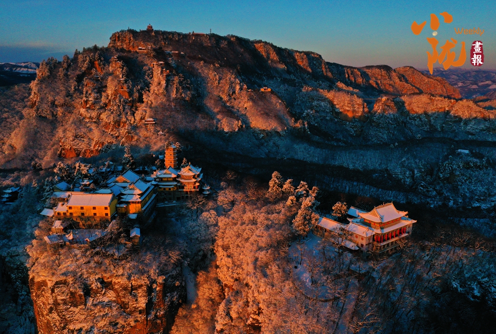 雪,為“西來第一山”披上了一襲亙古的素衣。舉目望去,朱紅的宮墻、青黑的瓦當(dāng),在白雪的映襯下,色彩格外鮮明莊重。
