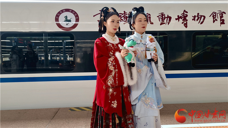 這趟列車,是敦煌研究院、甘肅省博物館、甘肅簡(jiǎn)牘博物館、蘭州市博物館、天水市博物館、武威市博物館、平?jīng)鍪胁┪镳^、臨夏州彩陶館(州博物館)、和政古動(dòng)物化石博物館九家國(guó)家一級(jí)博物館聯(lián)袂打造的“高鐵流動(dòng)博物館”。