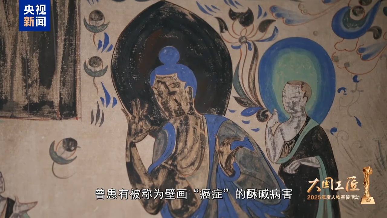 2025年大國工匠年度人物、敦煌研究院壁畫保護(hù)修復(fù)專家 樊再軒:這里,是我守護(hù)一生的地方——敦煌莫高窟,它是大漠深處矗立千年的文明圣殿。45年前,我開始修復(fù)敦煌壁畫,總感覺是在和古代的畫工們進(jìn)行著跨越時空的交流。這些壁畫,它是會呼吸的,它是有生命的。然而,壁畫當(dāng)中潛藏著很多的可溶鹽,在洞窟里受到溫濕度的影響,反復(fù)地潮解、結(jié)晶,導(dǎo)致壁畫膨脹、收縮。就像一雙雙無形的手,在一點(diǎn)一點(diǎn)撕裂著壁畫的肌膚,這就是壁畫“癌癥”。我暗下決心:要讓這千年瑰寶在時光的長河里留存得久一點(diǎn),更久一點(diǎn)。