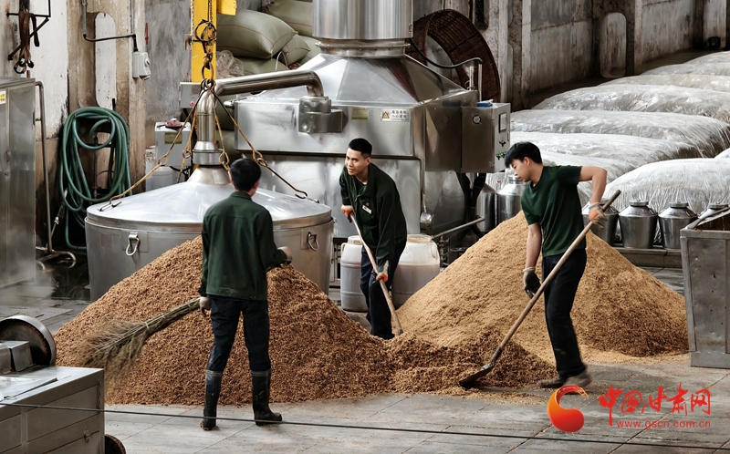 金徽酒廠的釀酒師傅們正專(zhuān)注于金徽春釀酒的制作,每一道工序都飽含著匠心。
