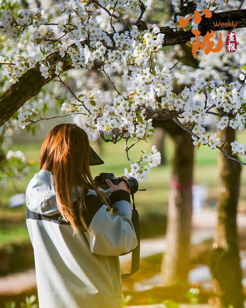 梨花如雪覆滿枝頭,暖陽輕柔,紅發(fā)少女以鏡頭為筆,把春日的爛漫與心動,悄悄藏進快門里。
