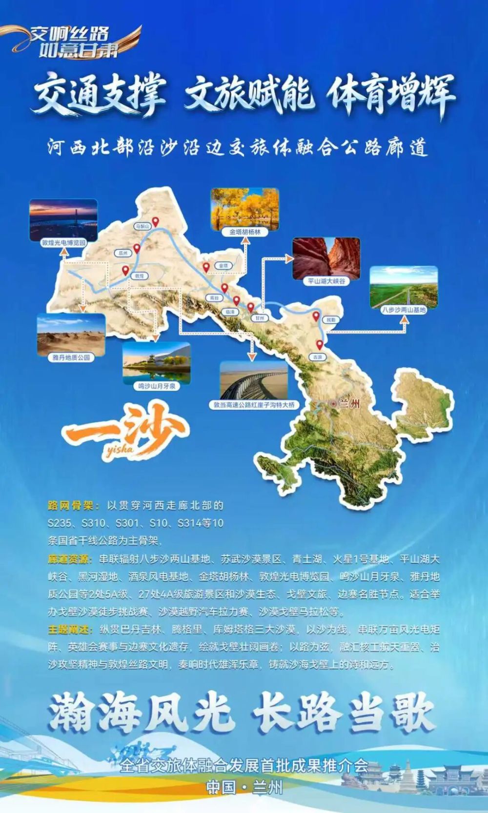 以“瀚海風光?長路當歌”為主題,打造河西北部沿沙沿邊交旅體融合廊道,即“一沙廊道”。